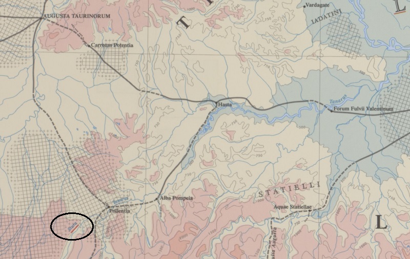 | Begründung zur Datierung: | Setzt man den Varus mit dem bei Plinius genannten Stura gleich, ist sein Eintrag auf der Karte spätestens kaiserzeitlich zu datieren. |