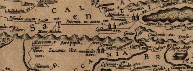 [PK: Laut Talbert soll die Distanzfigur XVI von Cosianum nach Foro popili führen, laut der Barrington Karte macht es aber mehr Sinn, hier eine Verbindung zu Vico mendicoleo zu setzen und Cosianum quasi als Kreuzungspunkt anzusetzen zwischen der Strecke Acerronia - Foro popili - Vico mendicoleo - Nerulos und der Strecke Vico mendicoleo - Cosianum - Tarent (an Grumento vorbei), das bedeutet, im Grunde fehlt die Strecke Cosilianum Foro popili. Fraglich ist auch, was das Folgetoponym von Cosilianum ist? Tarent oder Grumento? Es macht mehr Sinn eine Verbindung nach Tarento (über Grumento) zu sehen]. |