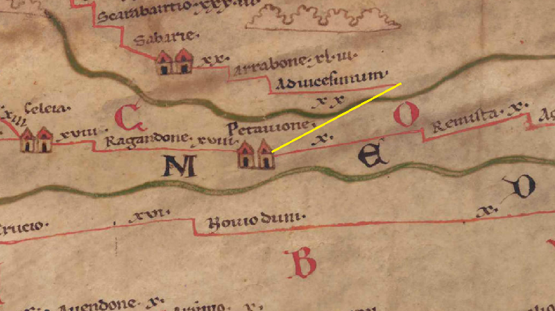 | Itinerar (ed. Cuntz): | Patavione (129,6; 261,4; 262,2) |