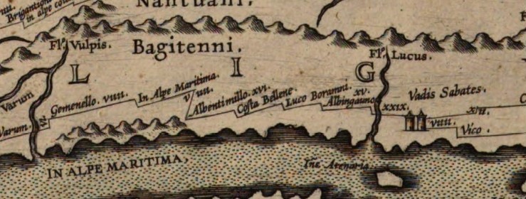 | Nombre B (Barrington Atlas): | Alb(i)um Intimilium/Albintimilium (16 E2) |
